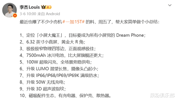 新一代「小屏大魔王」一加 15T 本月发布,是给所有小屏党打造的「Dream Phone」。
